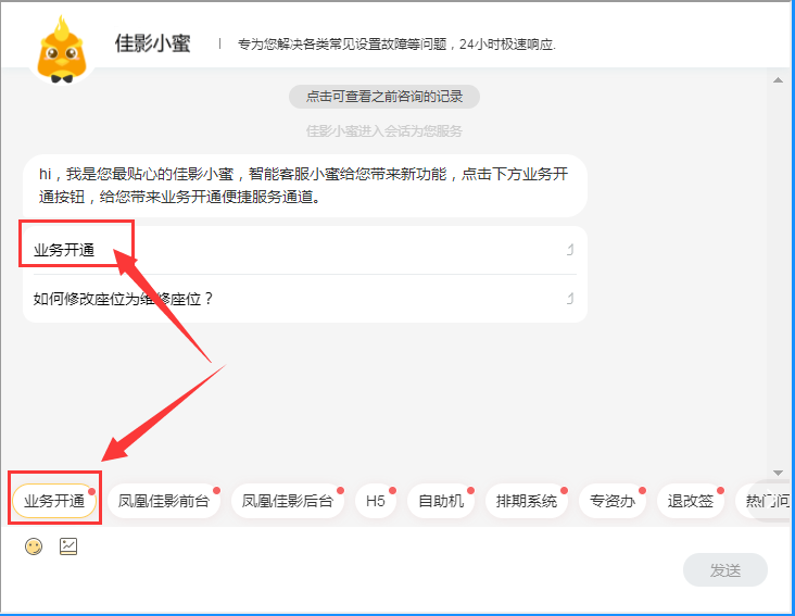 进入佳影客服小蜜咨询界面后点击【业务开通】按钮即可找到相应开通链接,如有疑问,请及时联系我司客服咨询。