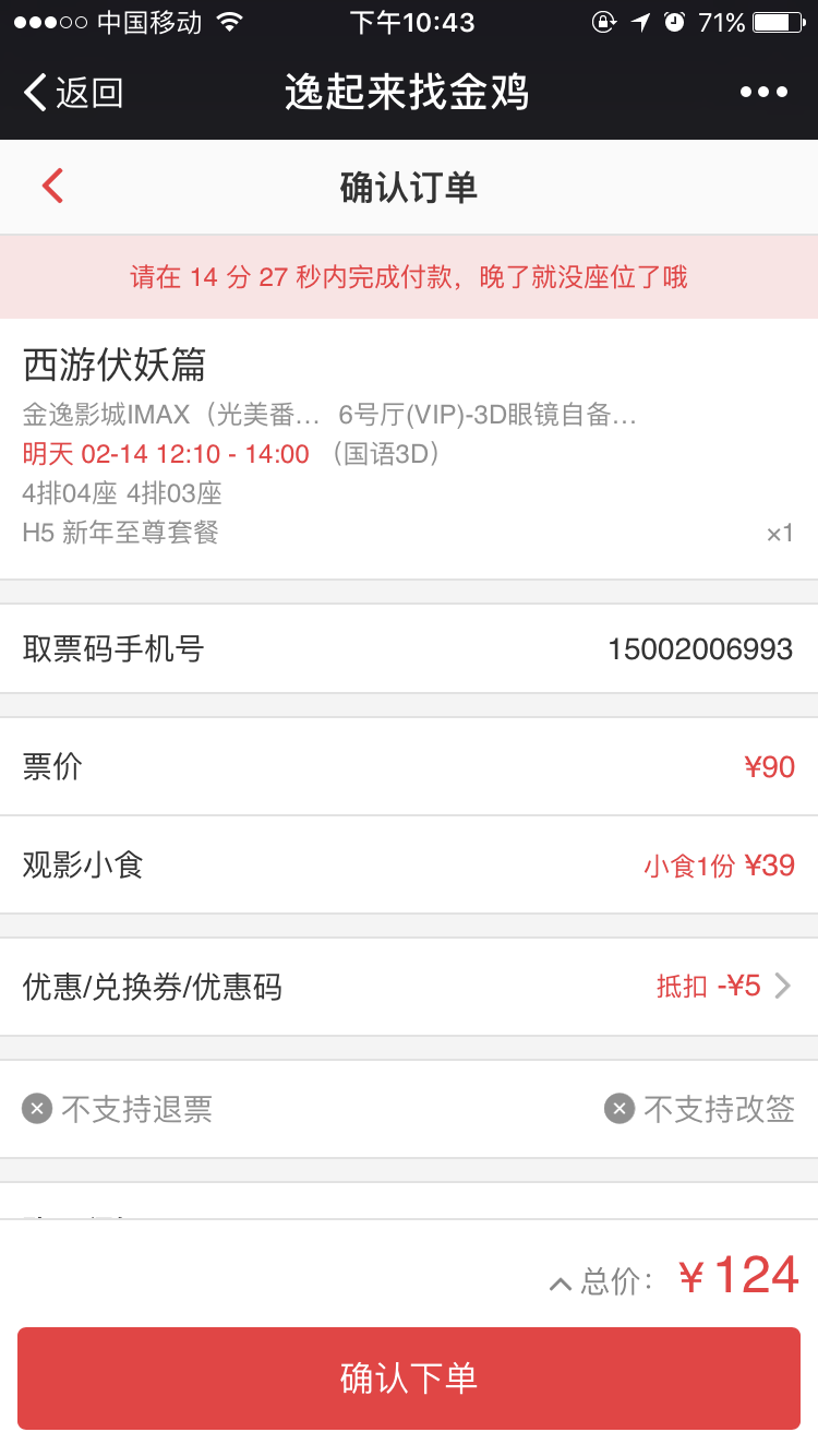 支持微信、支付宝及会员卡支付,可选择各种优惠方式搭配支付。