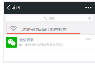 6、顾客连接上WIFI后,点击“微信消息顶部的WIFI”可以进入影院配置的商家主页