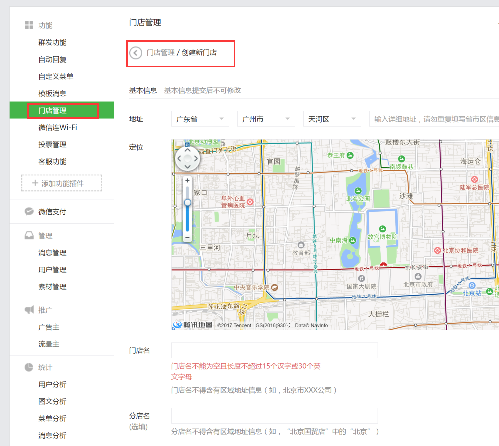 创建门店,添加门店信息
